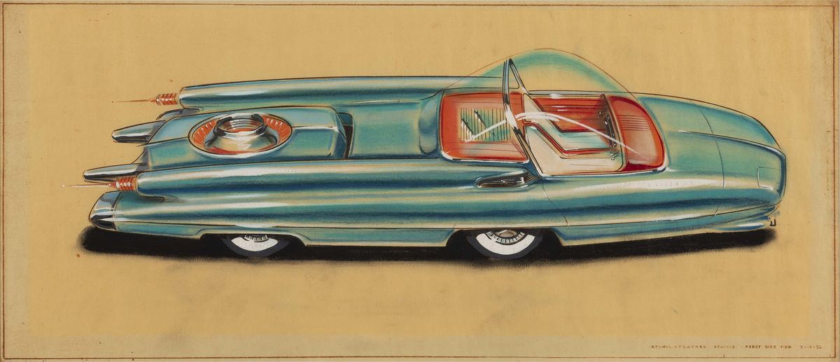 El Nucleon, un modelo a escala de 3/8, permitió vislumbrar el futuro impulsado por la energía atómica. Diseñado bajo el supuesto de que algún día se reducirían el volumen y el peso actuales de los reactores nucleares y el blindaje correspondiente, el Nucleon tenía como objetivo investigar la posible influencia en el diseño de la energía atómica en los automóviles.