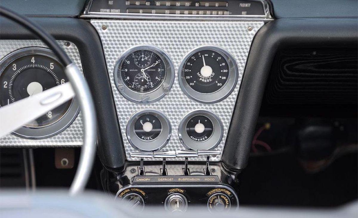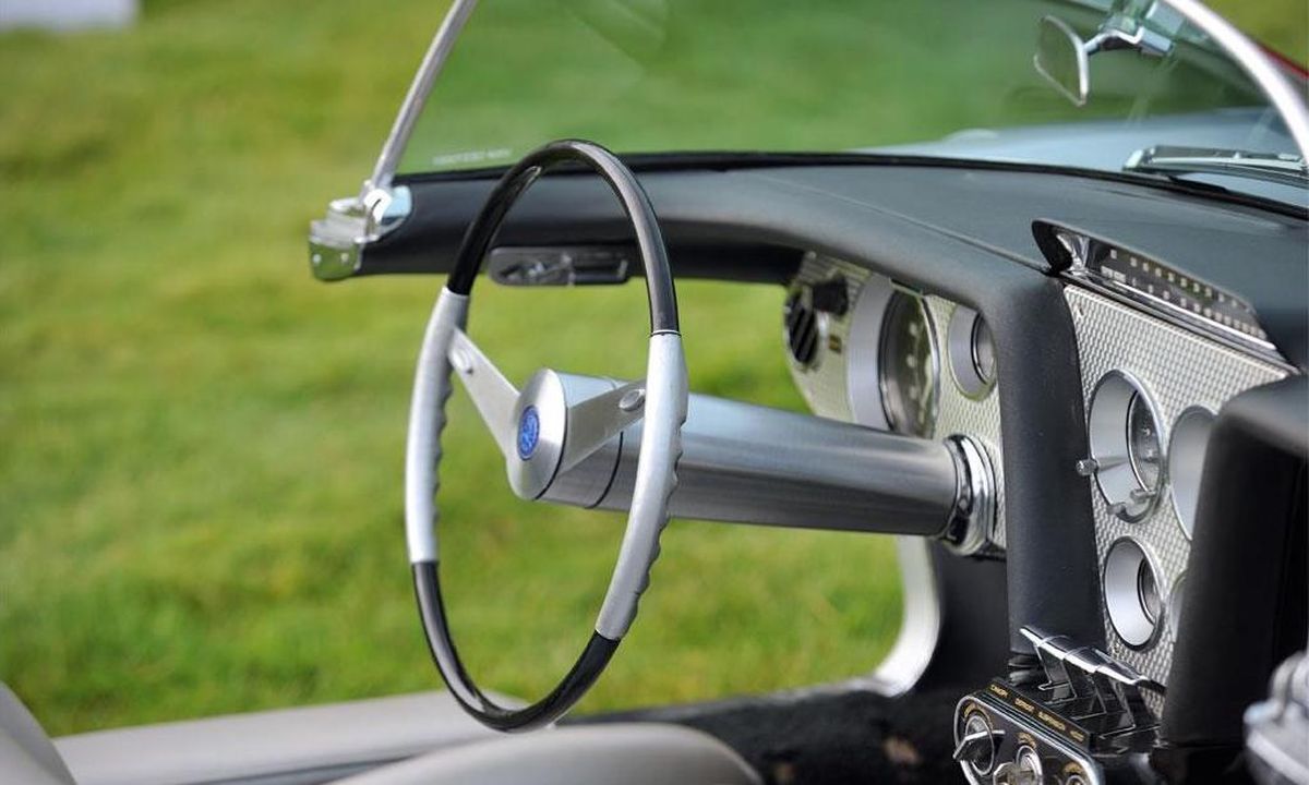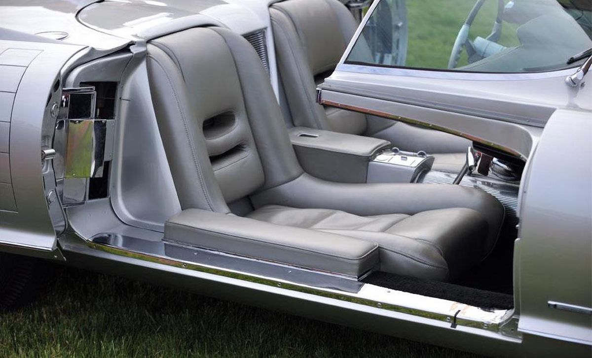 El Cadillac Cyclone de 1959 fue diseñado para probar nuevas ideas de estilo e ingeniería. El automóvil para dos pasajeros tiene una cubierta de plástico transparente que se ajusta perfectamente al parabrisas panorámico para brindar al conductor una verdadera visión de 360 grados. Cuando no está en uso, la cubierta eléctrica se pliega hacia atrás debajo de la superficie de la plataforma del maletero. Se levanta automáticamente cuando se abre cualquiera de las puertas. Con solo tocar un botón, las puertas del Cyclone se mueven hacia afuera del auto tres pulgadas. Se mueven suavemente sobre rodamientos de bolas y se pueden deslizar hacia atrás para facilitar la entrada. Entre sus características de ingeniería avanzada se encuentra un dispositivo de radar que escanea la carretera y advierte al conductor electrónicamente de los objetos que se encuentran en su camino. Grandes conos de nariz gemelos en la parte delantera del automóvil albergan las unidades de detección de proximidad.