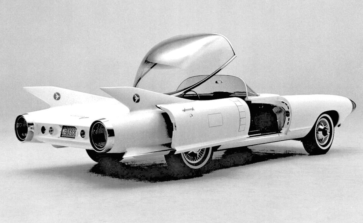 El año 1959 demostró una vez más que la imaginación del diseñador jefe de GM no tenía límites. Cadillac mostró su Cyclone biplaza. Se podría pensar que su carrocería fue diseñada por el diseñador de aviación Kelly Johnson: literalmente, todos los elementos plásticos están tomados directamente de la aviación. El proyecto Cyclone es el coche más cercano al estilo de aviación de la era del aeroestilo.