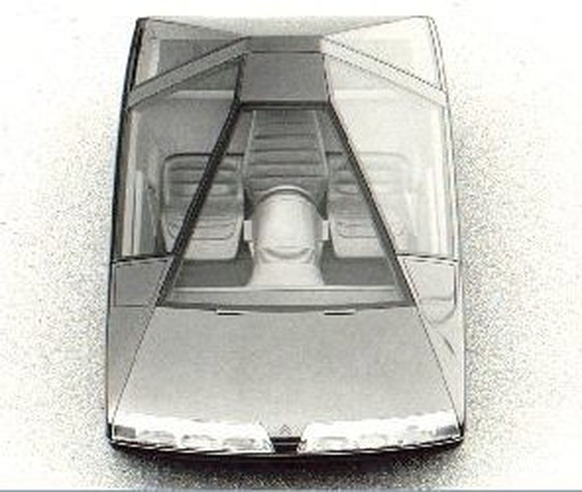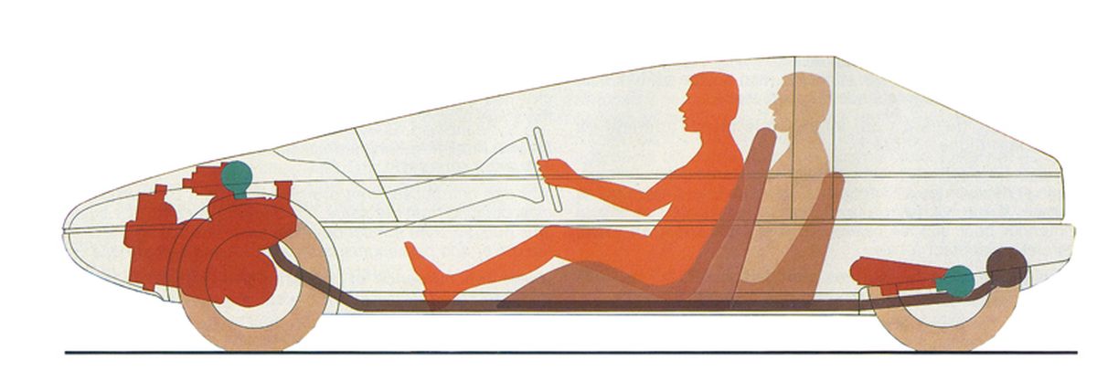 En el interior había tres asientos, con el conductor sentado en el medio, ligeramente detrás de los dos pasajeros. El volante único estaba perfectamente al alcance del conductor, gracias a la columna de dirección extremadamente larga. Toda la instrumentación digital se colocó detrás del volante debajo de una caseta de control semicircular.