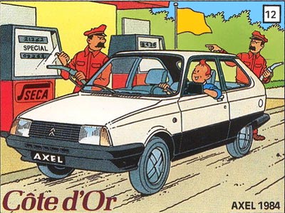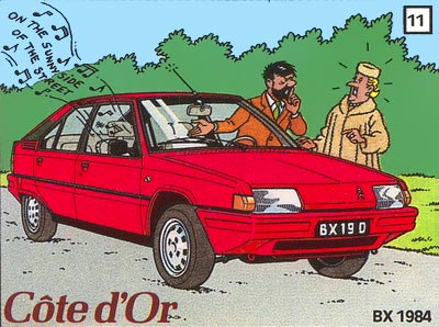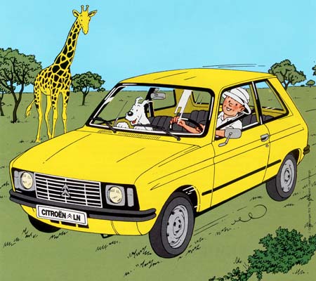 Hergé trabajó repetidamente con Citroën y dibujó varios anuncios para el fabricante de automóviles francés. No hay muchos Citroën en los álbumes de Tintín: conté 14 frente a 22 Ford. Hergé también trabajó para Ford antes de la guerra.